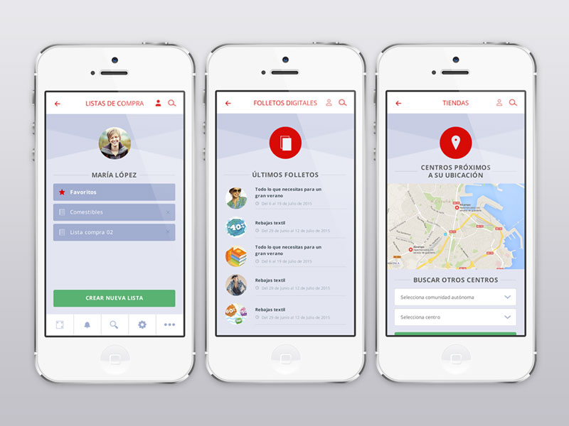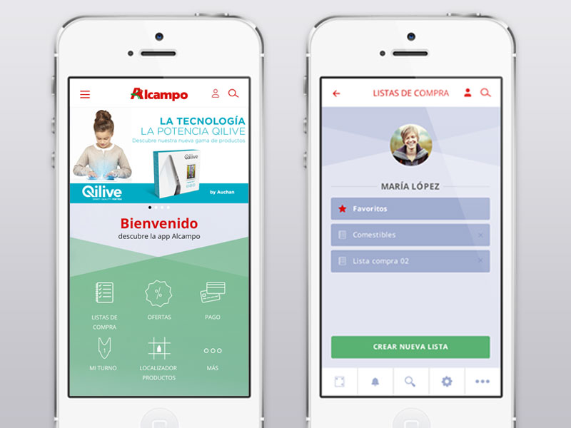 Realización del mockup de diseño para oferta comercial: App móvil de Alcampo. Propuesta realizada como diseñadora en Tecnocom.